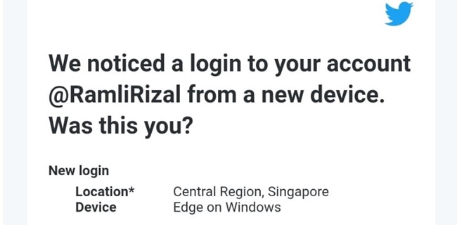 Tak tanggung-tanggung, oknum tersebut mencoba masuk ke akun @RamliRizal dari luar negeri.
