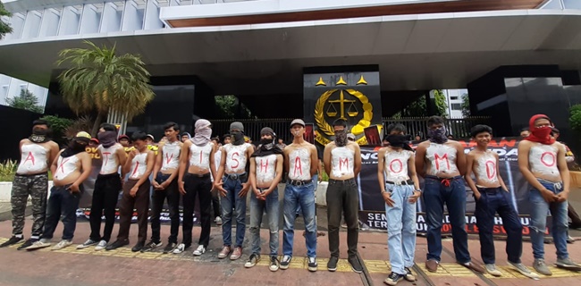 "Omong kosong bicara HAM. Kalian hanya bekerja sesuai pesanan dan berjuang atas segelintir orang. Giliran bukan bagian dari gerbong kalian, HAM tidak kalian suarakan," kata koordinator aksi, Ahmad.