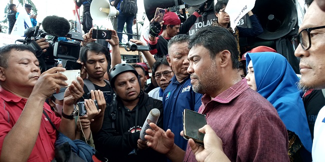 Demikian disampaikan oleh Presiden Konfederasi Serikat Pekerja Indonesia (KSPI), Said Iqbal saat ditemui wartawan ketika berunjuk rasa di depan Gedung Dewan Perwakilan Rakyat Republik Indonesia (DPR RI).