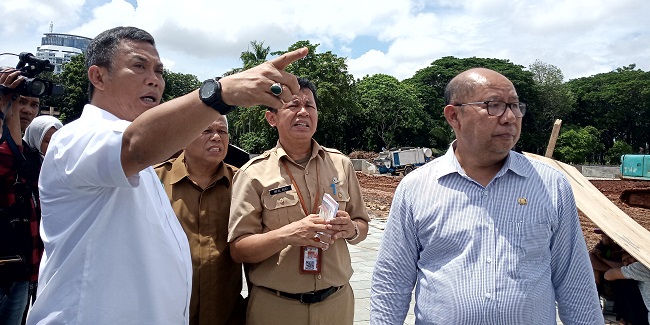 Di hadapan Kepala seksi Pelayanan Informasi UPK Monas, Irfal Guci, Prasetio yang ditemani anggota DPRD dari fraksi PDI Perjuangan, Pantas Nainggolan dan Pandapotan Sinaga, melakukan pantauan langsung proyek revitalisasi Monas.