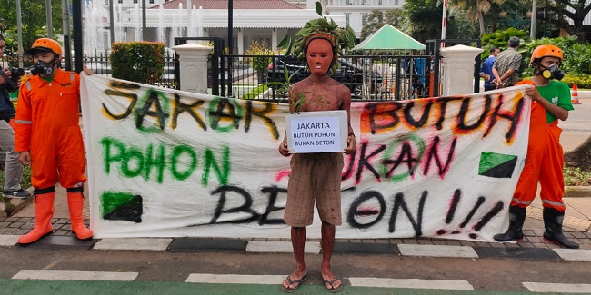"Pengalihfungsian ruang terbuka hijau menjadi beton adalah bentuk lemahnya komitmen pemerintah DKI Jakarta terhadap pemulihan lingkungan hidup," ujar aktivis Kampanye Pemulihan Lingkungan Hidup dan HAM Walhi DKI Jakarta, Naibaho, saat menggelar aksi di depan Gedung Balaikota DKI Jakarta, Kamis (30/1).