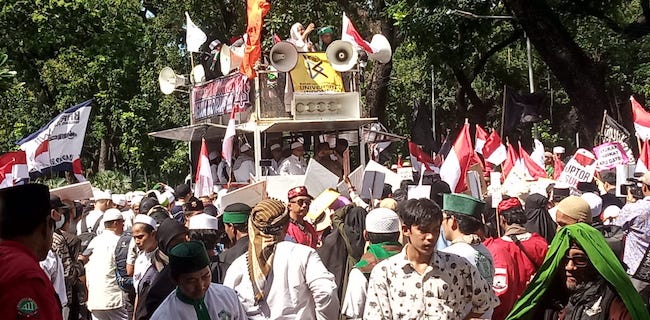 Dalam sebuah orasi, sang orator tidak hanya menyinggung mengenai kasus korupsi yang terjadi di tanah air, mereka turut menyinggung pernyataan dari Yudian Wahyudi yang seolah mempertentangkan agama dan Pancasila.
