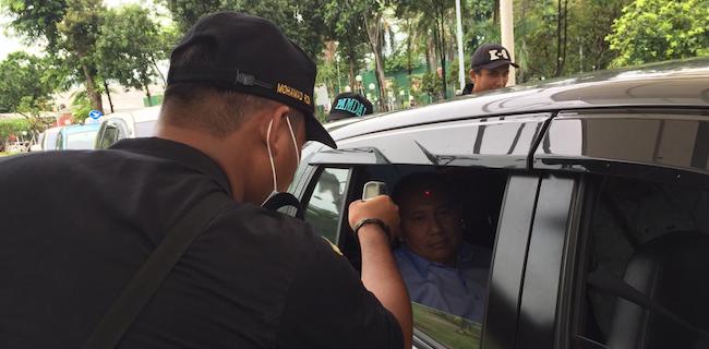 Kantor Berita Politik RMOL di pintu masuk utama Gedung DPR RI, petugas keamanan setempat melakukan pemeriksaan kendaraan sekaligus pemeriksaan suhu tubuh kepada pengendara motor dan mobil serta pejalan kaki.