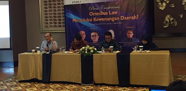 Demikian dikatakan Kepala Center of Macroeconomics and Finance Indef Rizal Taufiqqurahman, dalam diskusi ‘Omnibus Law Mereduksi Kewenangan Daerah’ di ITS Tower, Pasar Minggu, Jakarta Selatan, Jumat (6/3).