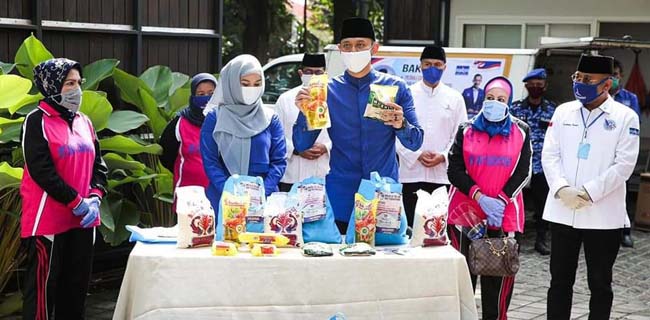 Di dampingi sang istri Annisa Pohan, AHY melepas 1000 paket sembako untuk dibagikan kepada masyarakat yang membutuhkan di 10 titik lokasi di sekitar Jakarta.