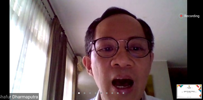 Ghafur Akbar mewakili Muhadjir Effendy saat mengisi diskusi daring bertajuk "Memahami Data Terpilah Covid-19 dan Mempersiapkan Kenormalan Baru Anak dalam Pandemi", Rabu (3/6).