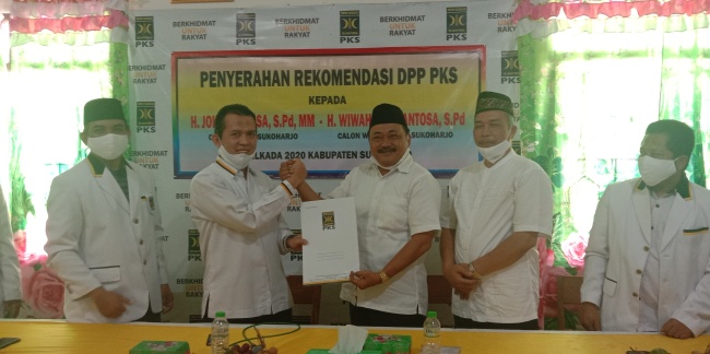 Penyerahan rekomendasi dilakukan oleh tim BP3 DPW PKS Provinsi Jateng, Rohadi Wibowo, kepada pasangan Joko Paloma-Wiwono yang disingkat Joswi, di Kantor DPD PKS Sukoharjo, Kamis (11/6).