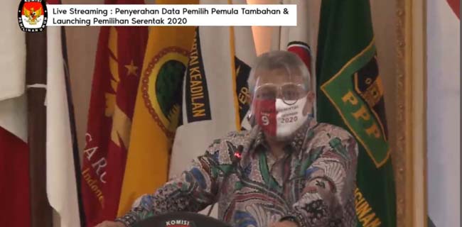Dalam acara penyerahan data pemilih pemula tambahan, sosialisasi tahapan, dan peluncuran tahapan Pilkada Serentak 2020, Ketua KPU Arief Budiman memperlihatkan sejumlah APD yang akan digunakan petugas pemilu di lapangan.
