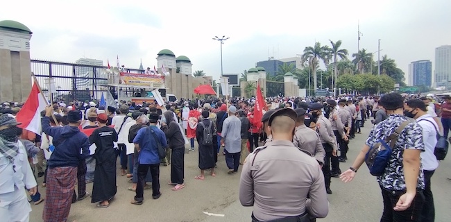 Kantor Berita Politik RMOL pukul 12.35, ribuan massa dari berbagai organisasi masyarakat (ormas) telah berkumpul di depan Gedung DPR RI.