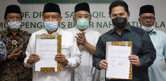 Erick Thohir dalam penandatanganan itu menekankan pentingnya partisipasi PBNU dalam implementasi program-program pemerintah terutama untuk mengakselerasi pemulihan ekonomi nasional.