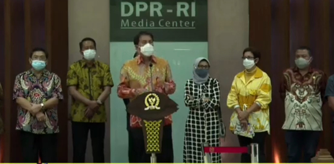 Selain Azis Syamsuddin, turut hadir saat jumpa pers antara lain Ketua Badan Legislasi (Baleg) DPR RI Suprarman Andi Agtas, anggota Komisi I DPR RI Nurul Arifin, Sekjen DPR RI Indra Iskandar dan yang lainnya.