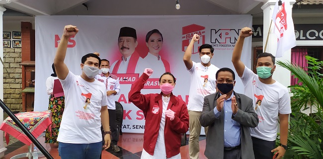 Deklarasi dukungan Bara JP terhadap Muhamad-Saraswati dilakukan di Selasar Cafe, Ciputat Timur, Tangsel, Senin (26/10).