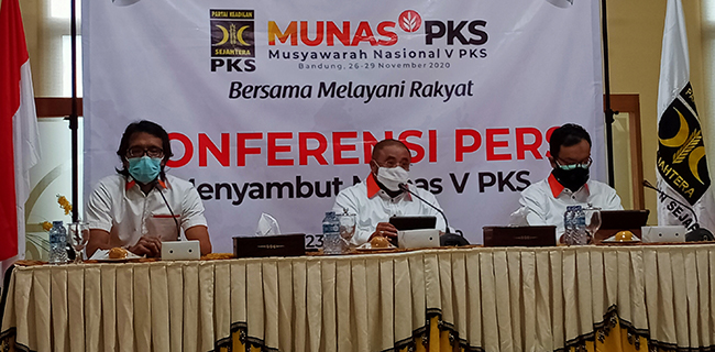 Turut hadir saat jumpa pers mendampingi Aboe Bakar Al-Habsyi, Ketua Panitia Munas V PKS di Bandung Arfian dan Ketua Humas PKS, Mabruri Moderator.