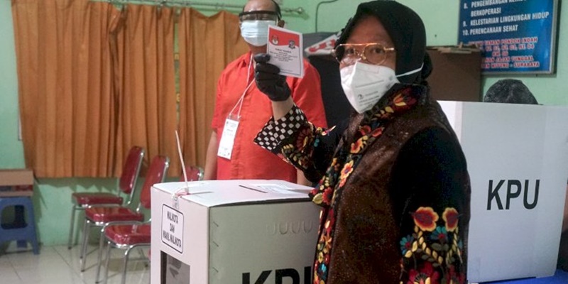 Seusai menggunakan hak pilihnya, Risma bersama suami dan anak keduanya kembali berjalan kaki menuju rumah. Menariknya, di tengah perjalanan itu, ia sempat mampir di Pasar Krempyeng memborong jajanan pasar untuk awak media yang melakukan peliputan.