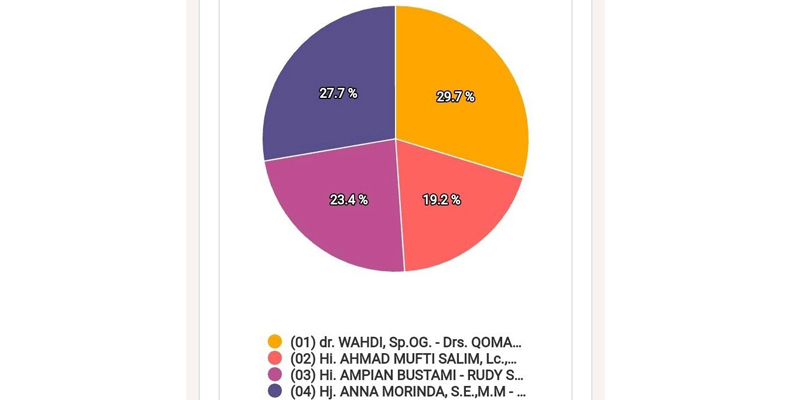 Paslon Wahdi-Qomaru unggul 2 persen dari pasangan calon nomor urut 4, Anna Morinda-Fritz Akhmad Nuzir, dengan angka 27,7 persen.