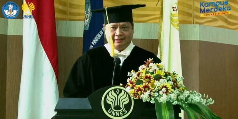 Rektor Unnes, Fathur Rokhman menjelaskan bahwa Airlangga Hartarto merupakan mahasiswa ke-enam yang diberikan penganugerahan Honoris Causa oleh Universitas Negeri Semarang.