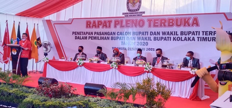Berdasarkan hasil rekapitulasi suara yang disahkan KPU Koltim dalam rapat pleno siang tadi, Paslon SBM mendapat 38.409 suara. Sementara lawannya, paslon 01 Toni Herbiansyah-Baharuddin mendapat 34.630 suara.