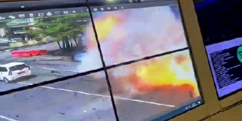Menurut keterangan polisi, ledakan bom terjadi sekitar pukul 10.20 WITA setelah gereja menggelar Misa Minggu Palma. Pelaku diduga dua orang yang menggunakan sepeda motor yang sempat dicegah masuk oleh sekuriti.