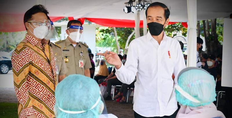 Saat meninjau vaksinasi di DKI Jakarta ini, Jokowi didampingi Menteri Kesehatan Budi Gunadi Sadikin, Gubernur DKI Jakarta Anies Baswedan, dan Wali Kota Jakarta Pusat Dhany Sukma.