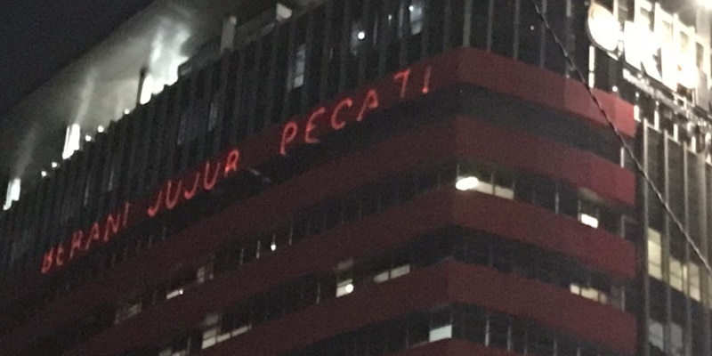 Laser dengan tulisan "Berani Jujur Pecat" itu merupakan sebuah aksi yang dilakukan oleh Greenpeace Indonesia karena menganggap KPK sedang dilemahkan. Aksi itu digelar pada hari ini, Senin malam (28/6).