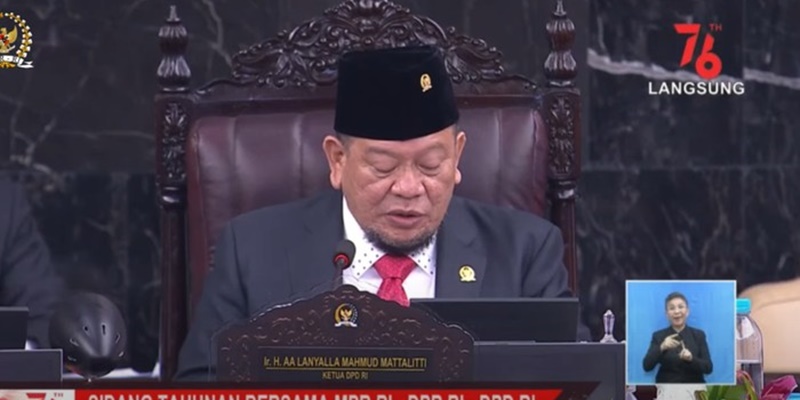 Demikian disampaikan Ketua DPD RI, LaNyalla Mahmud Mattalitti dalam pidatonya di acara Sidang Tahunan MPR bersama DPR dan DPD Tahun 2021, pada Senin (16/8).