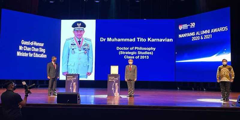 Menteri Pendidikan Singapura yang berkesempatan menyerahkan penghargaan alumni terhormat itu menilai bahwa Mendagri Tito memiliki kontribusi luar biasa kepada penciptaan keamanan kawasan.
