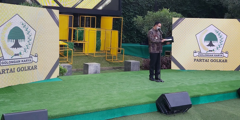 Anies tampak memberikan sambutan kepada seluruh kader yang datang dalam acara perayaan HUT Partai Golkar tersebut, di akhir pidatonya Anies Baswedan melontarkan pantun untuk Partai Golkar.