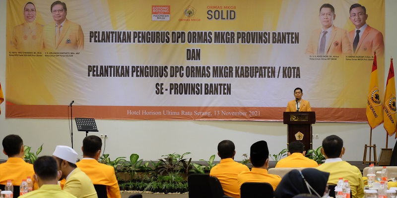 Pelantikan ini, dipimpin langsung Ketua Umum DPP Ormas MKGR Adies Kadir, di Hotel Horison Ultima Ratu, Kota Serang, Banten, Sabtu (13/11).