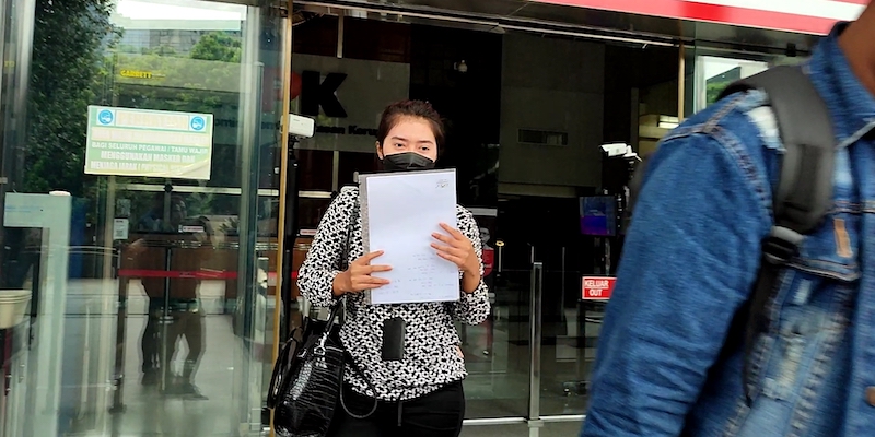 Tri Rosmayanti tak menjawab berbagai pertanyaan yang dilontarkan kepadanya. Dia hanya berusaha menutupi wajahnya dengan sebuah map bening yang berisi kertas hingga keluar dari area Gedung Merah Putih KPK, Jalan Kuningan Persada Kav 4, Setiabudi, Jakarta Selatan.