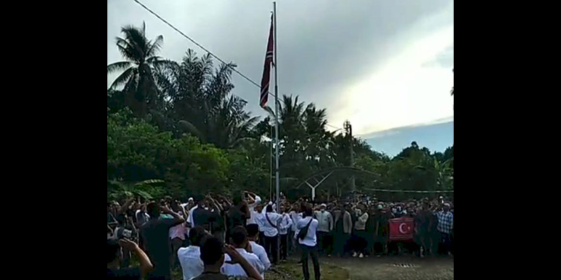 Upacara pengibaran bendera Bulan Bintang dilaksanakan oleh sejumlah warga selama 30 menit, Sabtu (4/12). Setelah itu, acara dilanjutkan dengan doa bersama di dalam masjid.