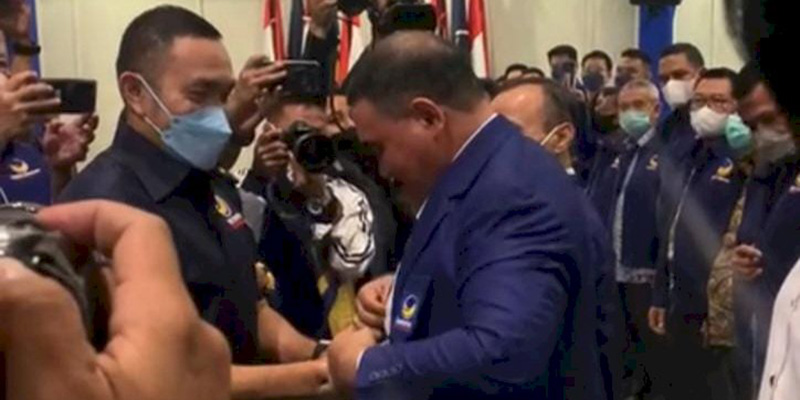 Mantan Ketua DPD Partai Hanura DKI Jakarta, Mohamad (Ongen) Sangaji, memimpin langsung prosesi penyematan jas partai besutan Surya Paloh tersebut.