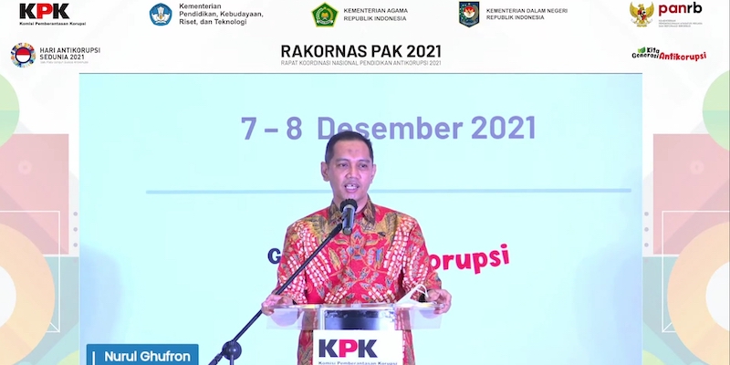 keynote speech di acara rangkaian Hari Antikorupsi Sedunia (Hakordia) 2021 dalam pembukaan Rakornas Pendidikan Antikorupsi (PAK) 2021 yang disiarkan langsung di akun YouTube KPK, Selasa pagi (7/12).