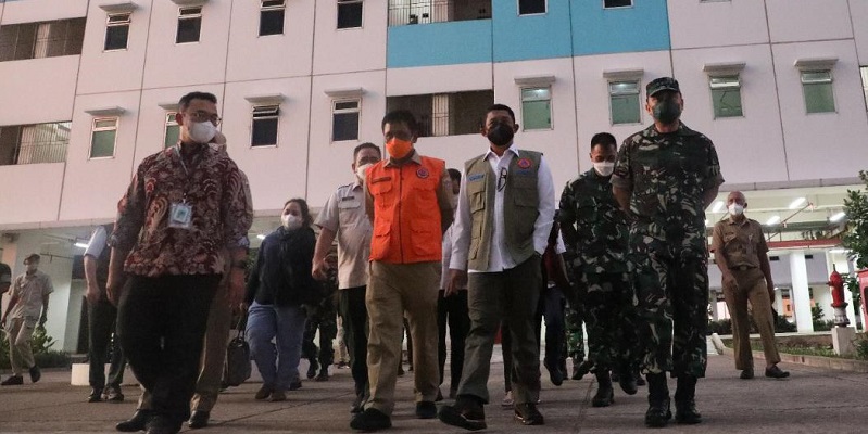 Usai meninjau Rusun Nagrak, Ketua Satgas berlanjut menuju Wisma Atlet Kemayoran.