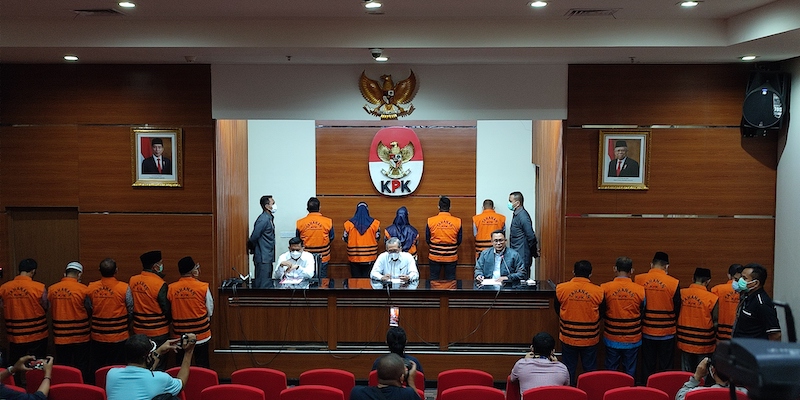Begitu penekanan dari Wakil Ketua KPK, Alexander Marwata saat mengumumkan tersangka dan menetapkan penahanan terhadap 15 anggota DPRD Kabupaten Muara Enim terkait kasus dugaan suap pengadaan barang dan jasa di Dinas PUPR dan Pengesahan APBD Kabupaten Muara Enim tahun 2019, di Gedung Merah Putih KPK, Jalan Kuningan Persada Kav 4, Setiabudi, Jakarta Selatan, Senin malam (13/12).