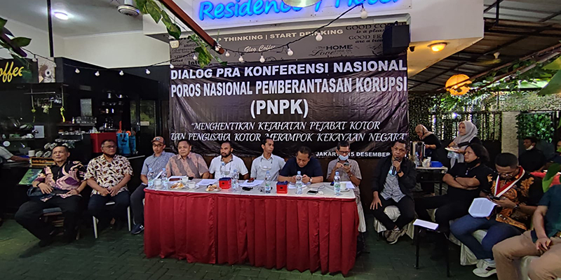 Para tokoh dan aktivis ini berkumpul dalam forum Dialog Pra Konferensi Nasional Poros Nasional Pemberantasan Korupsi (PNPK) bertajuk "Menghentikan Kejahatan Pejabat dan Pengusaha Kotor Merampok Kekayaan Negara" di Cafe House of Arsonia, Jalan Pejompongan Raya No. 2, RT. 07/05, Bendungan Hilir, Tanah Abang, Jakarta Pusat, Rabu sore (15/12).