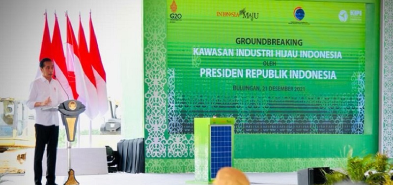 Demikian disampaikan Jokowi saat melakukan groundbreaking Kawasan Industri Hijau Indonesia, Tanjung Palas Timur, Kabupaten Bulungan, Provinsi Kalimantan Utara, Selasa (21/12).