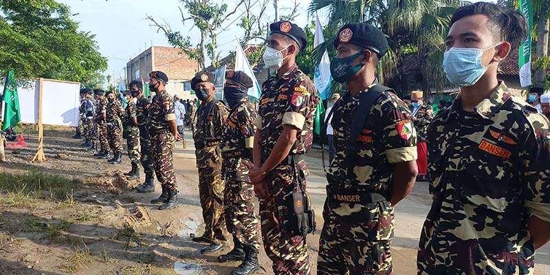 Sepanjang jalan menuju Ponpes dijaga pasukan Barisan Ansor Serbaguna (Banser) berseragam loreng. Sesekali mereka mengecek identitas orang yang lalu lalang.