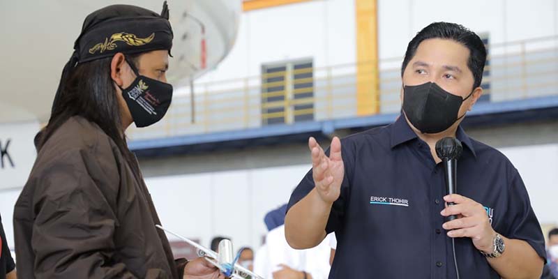 Pada pertemuan itu, Erick Thohir, mengapresiasi karya tangan Humaidi, santri asal Sampang, Madura, yang secara otodidak membuat miniatur pesawat Garuda Indonesia.