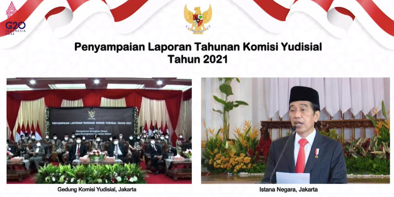 Pesan tersebut disampaikan Presiden Republik Indonesia, Joko Widodo saat memberikan sambutan penyampaian Laporan Tahunan Komisi Yudisial (KY) Tahun 2021 secara virtual dari Istana Negara, Rabu (9/3).