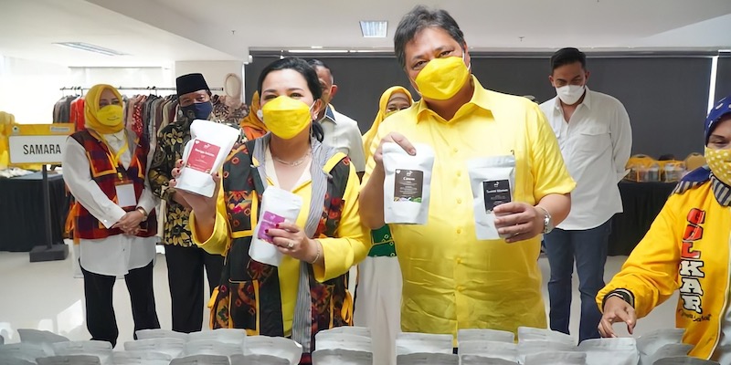 Menteri Koordinator Bidang Perekonomian itu datang bersama istrinya, Yanti K. Isfandiary atau kerap disapa Yanti Airlangga.