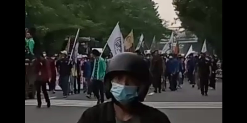 Ratusan mahasiswa ini, bergerak dengan melakukan