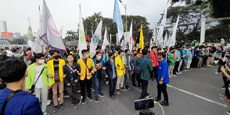Ribuan orang yang tergabung dalam Aliansi BEM SI saat ini sudah berada di depan Gedung DPR RI Jakarta. Mereka masih terus menyuarakan aspirasinya dengan pengeras suara.