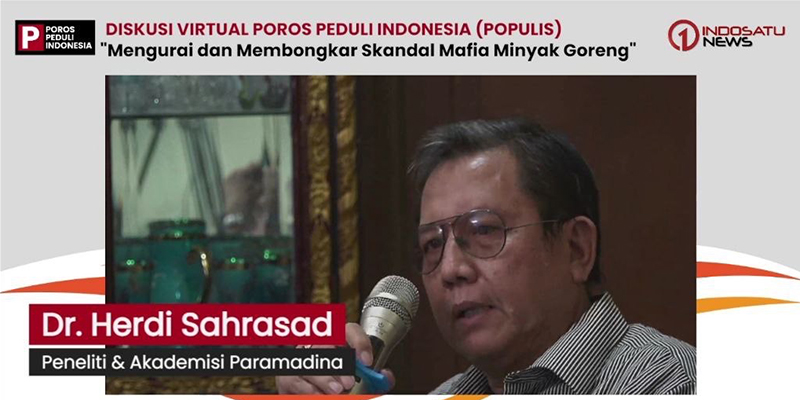 Hal itu disampaikan Peneliti sekaligus Akademisi Universitas Paramadina, Herdi Sahrasad dalam diskusi publik bertajuk "Mengurai dan Membongkar Skandal Mafia Minyak Goreng" pada Selasa (26/4).