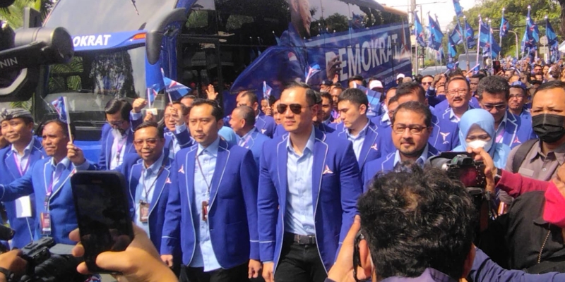 Sementara, sejumlah relawan yang ikut dalam iring-iringan Partai Demokrat meneriakan yel-yel yang menyebut nama AHY.