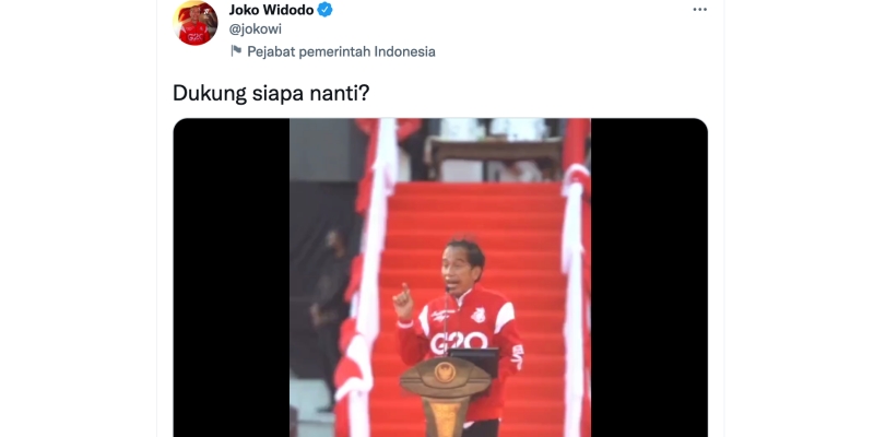 Namun menariknya, Presiden Jokowi turut menyelipkan pertanyaan kepada publik saat mengunggah potongan video pidatonnya. Pertanyaan itu disampaikan seakan ingin mengetahui keinginan publik terhadap sikapnya mengenai dinamika politik terkini.