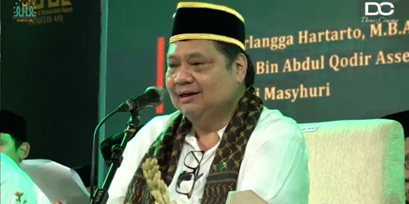 Airlangga menuturkan kehadirannya dalam acara tersebut bukan sebagai menko perekonomian maupun ketua umum Partai Golkar, namun sebagai pelayan haul.