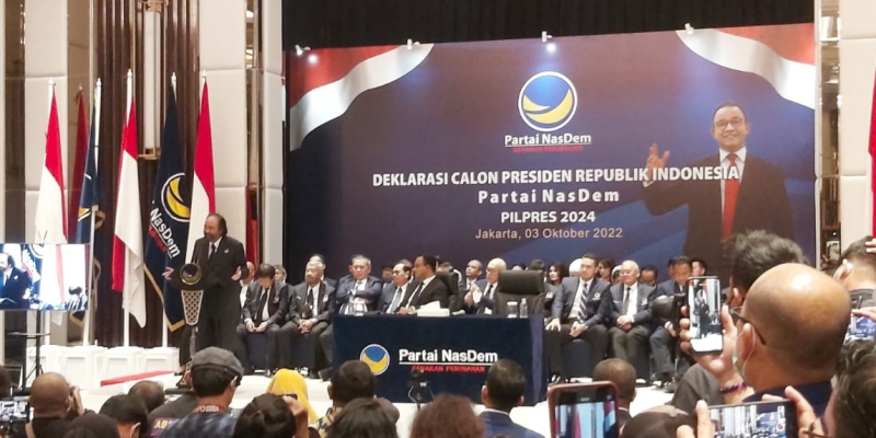 Dalam sambutannya, Surya Paloh menuturkan bahwa Anies Baswedan merupakan pilihan terbaik bagi Nasdem untuk diusung dalam Pilpres 2024 mendatang.