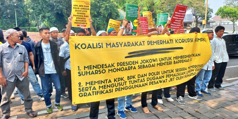 Desakan itu disampaikan massa dari Koalisi Masyarakat Pemerhati Korupsi (KMPK) saat menggelar aksi penyampaian aspirasi di depan Gedung Bappenas, Menteng, Jakarta Pusat, Selasa (4/10).