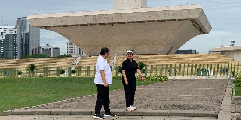 Tak banyak berbicara kepada awak media, keduanya lantas berjalan kaki dan berkeliling di sekitaran Monas sisi Tenggara.