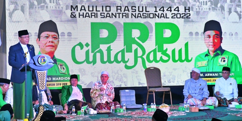 Begitu dikatakan Pelaksana Tugas (Plt) Ketua Umum PPP Muhamad Mardiono saat memberikan sambutan pada kegiatan peringatan Maulid Nabi Muhammad SAW dan peringatan Hari Santri 2022 di depan Kantor DPP PPP Jalan Diponegoro 60, Jakarta, Selasa malam (25/10).